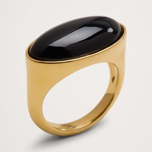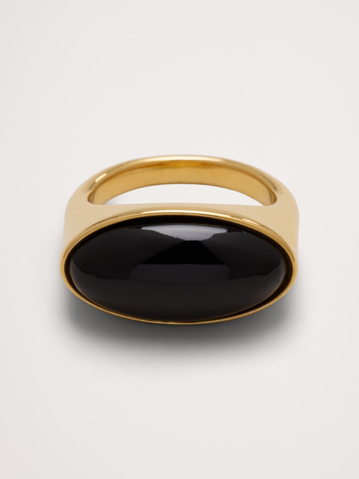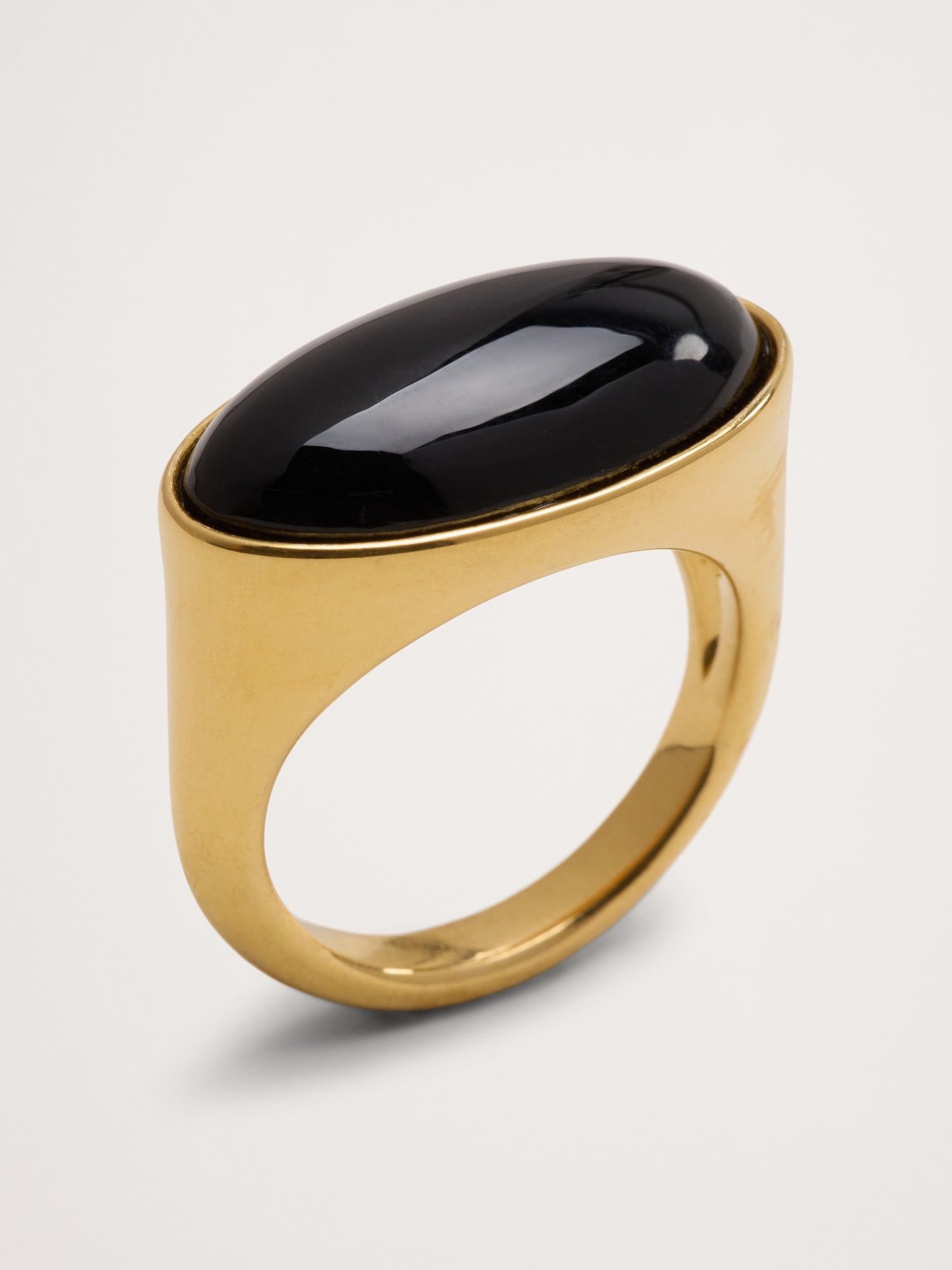 Sculptural gold and onyx ring, finished in 999-silver plated brass.