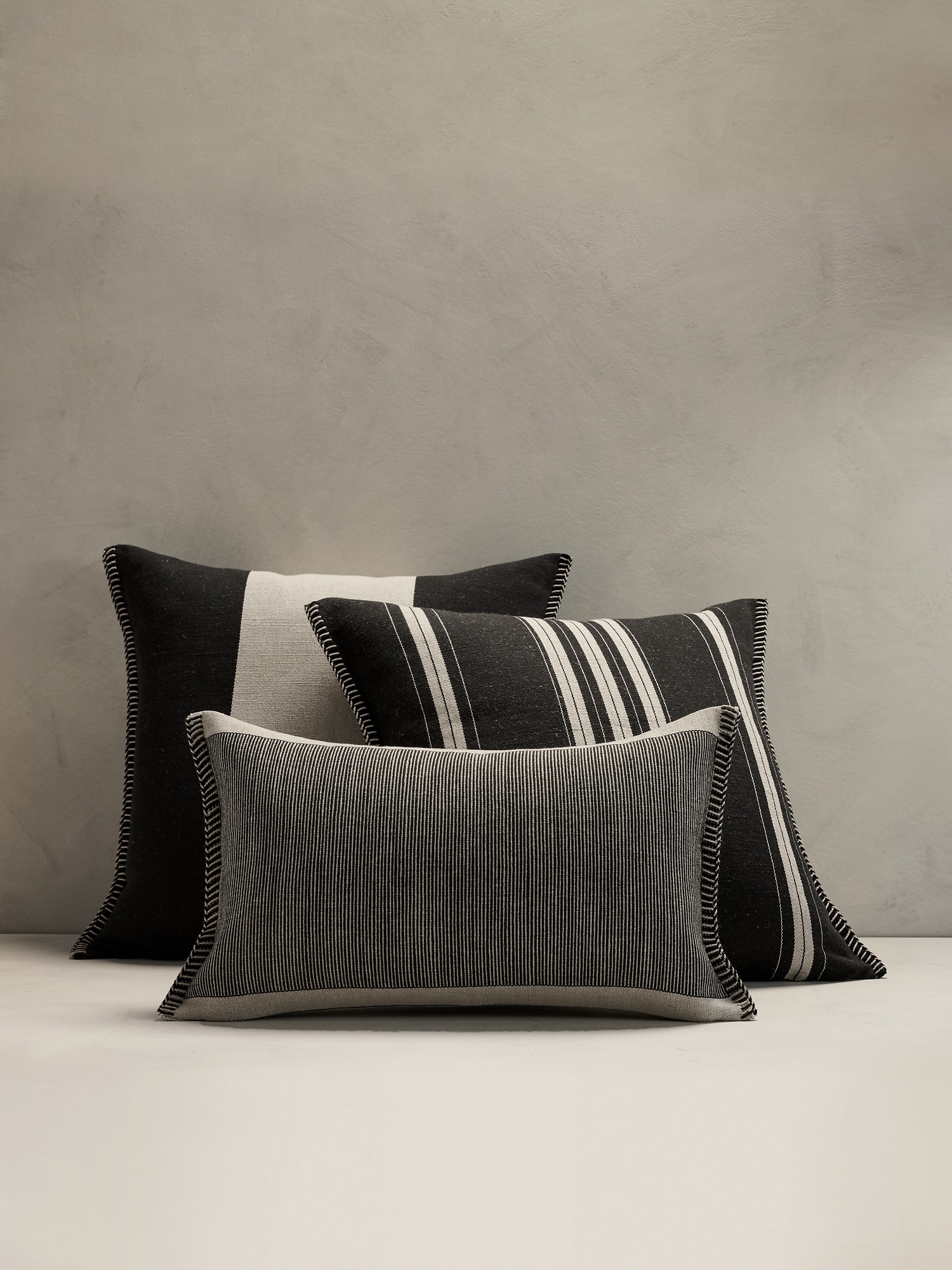 Distinctive and beautiful, soft cotton is spun with the incredible strength of jute fibers and hand-woven using ancient techniques to form remarkable throw pillow covers. Intricate touches, like whip stich detailing and a brass zip closure give a refined juxtaposition against the luxurious natural texture of this remarkable fabric. Pillow inserts are sold separately and are sized slightly larger than our pillow covers to create a fuller effect. Handmade in India. #619419