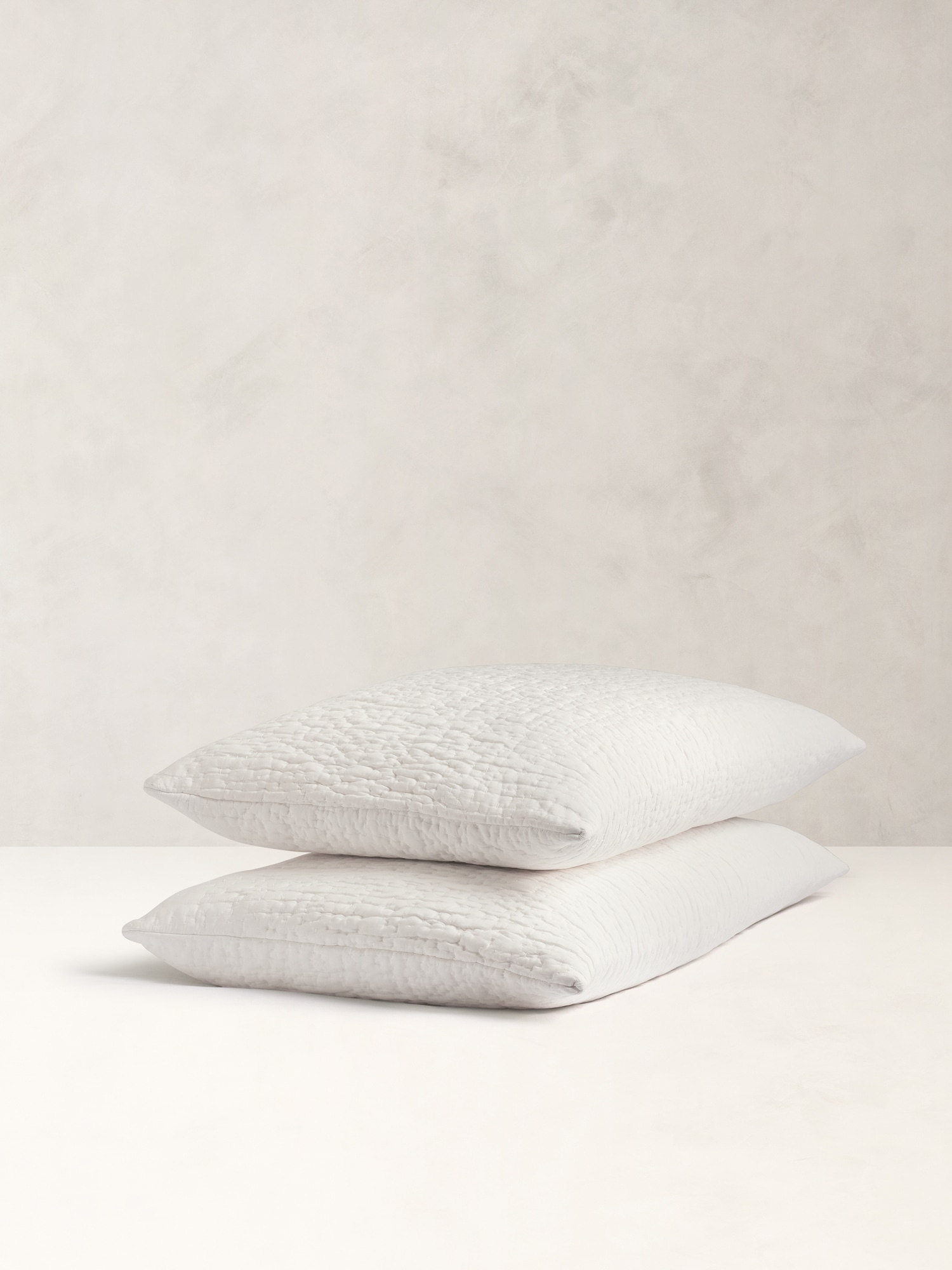 Masterfully crafted from silk, soft shams are expertly spun and then stitched by hand with an abstract pattern for subtle dimension.