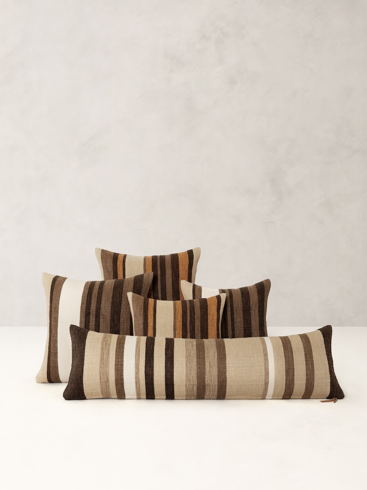 Elegant stripes add texture against a luxe linen-cotton ground Substantial yet soft linen-cotton yarns are woven into an asymmetrical striped pattern in striking complementary hues. The smooth