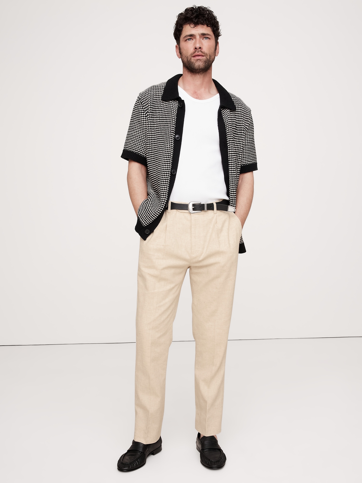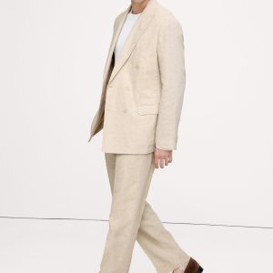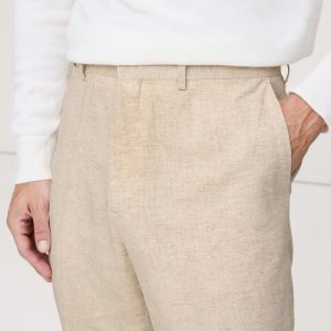 Herringbone Cotton-Linen Relaxed Suit Pant