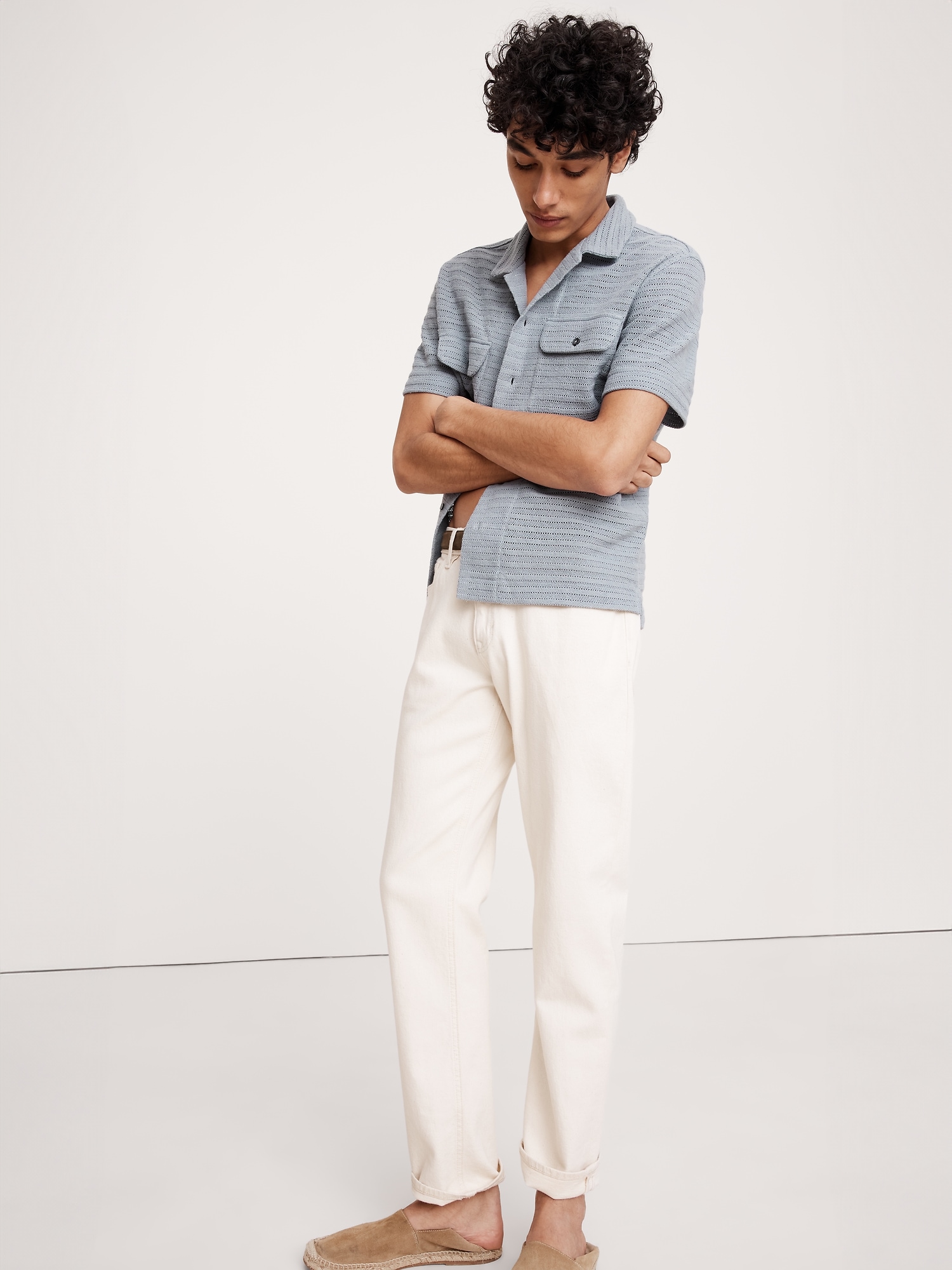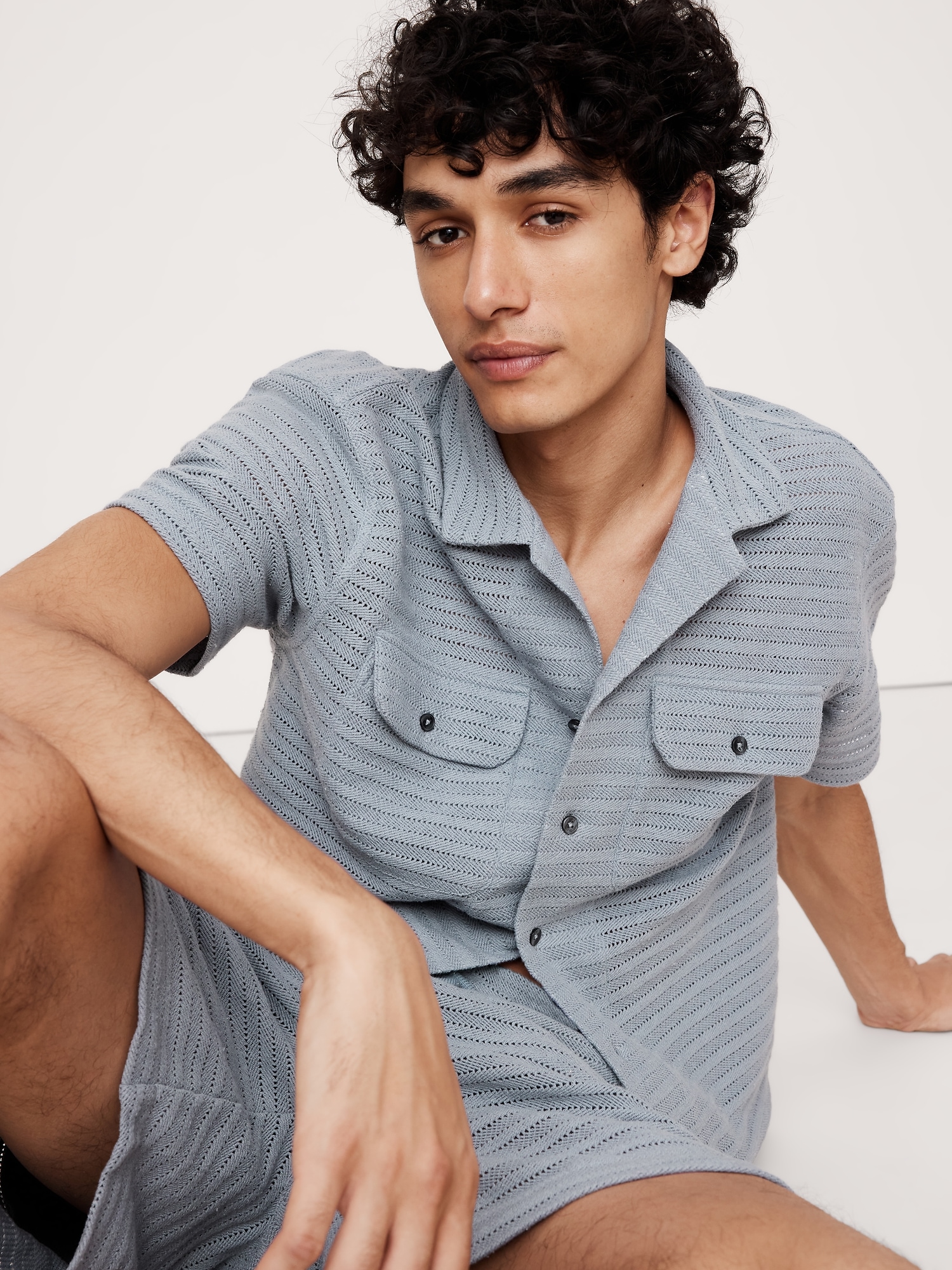 The vibe is off-duty. This resort shirt is cut from a textured herringbone fabric we love for its retro look and open stitches. Wear it buttoned with the matching shorts or leave it open and layer over your favorite tee. fit: A straight and easy fit.