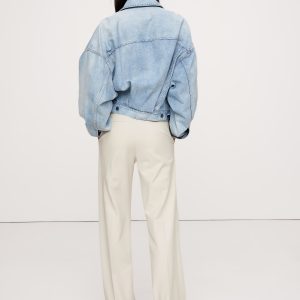 Modern Straight: Super-high rise (12\”). Fitted waist and hip, relaxed through the thighs with a straight leg. Full length.