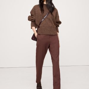 We fell hard for our signature Siena lightweight wool for its all-season weight, subtle stretch, and Italian origins. Here, we cut a slim silhouette with a high-rise and added a trouser crease so it’s giving full-on business formal. Wrinkle-Resistantrise (11.5\”). Fitted waist and hip, semi-fitted through the thigh with a slim leg. Ankle length.
