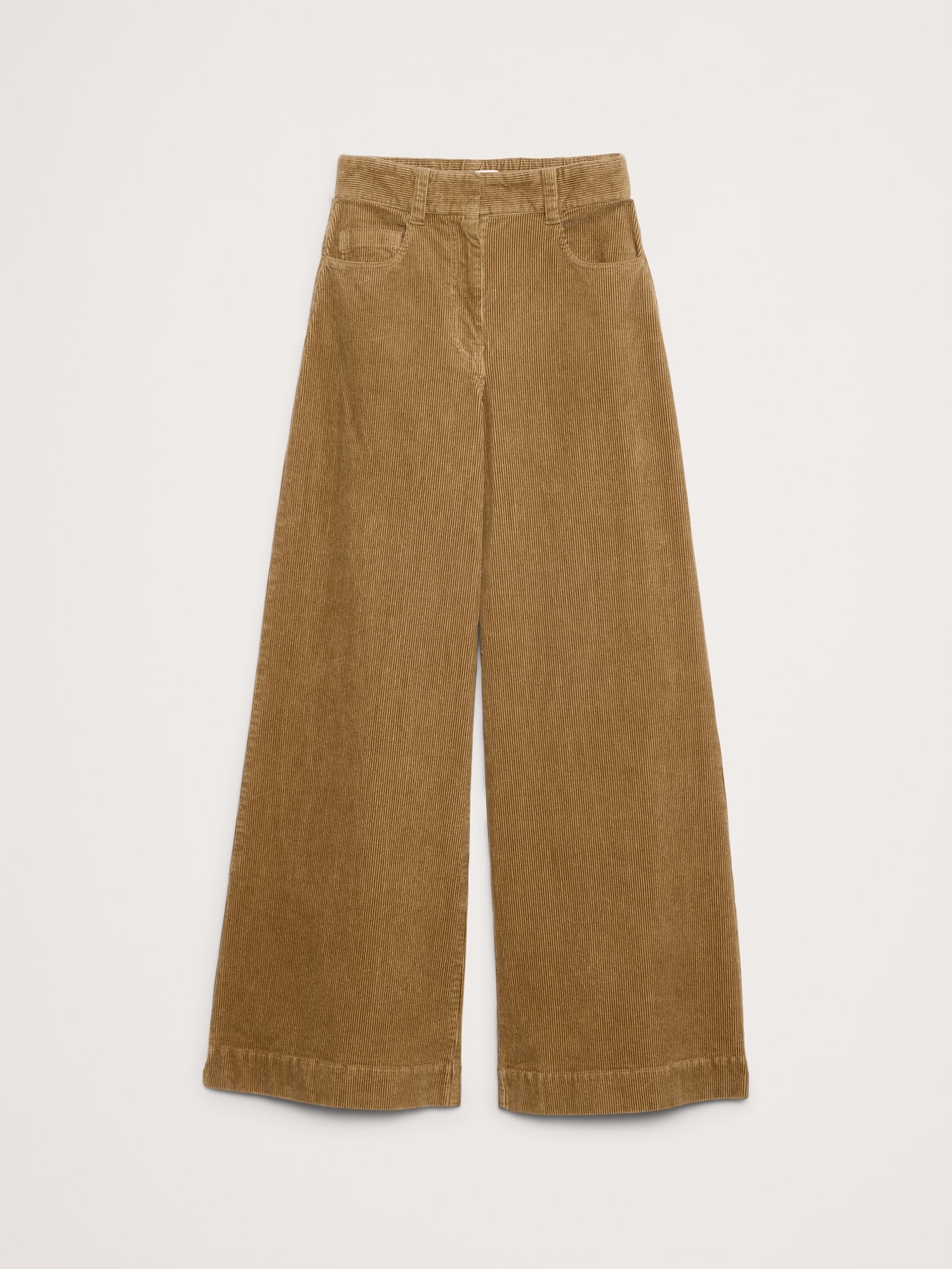 We took the silhouette of our favorite high-rise wide-leg jeans and reimagined them in cold-weather ready corduroy. Plus, we added a fully functional fly and some hidden elastic at the back waist for a custom fit.