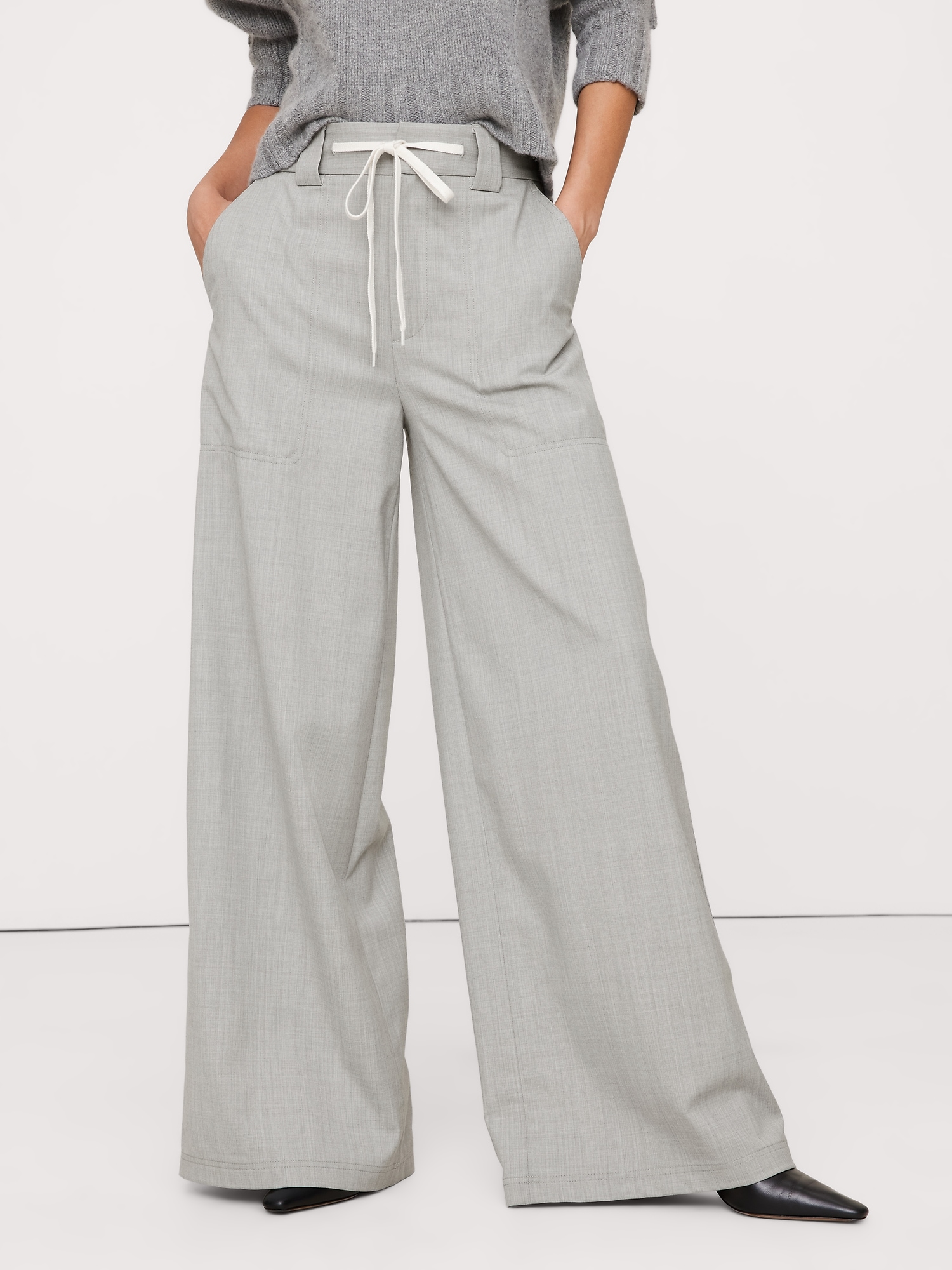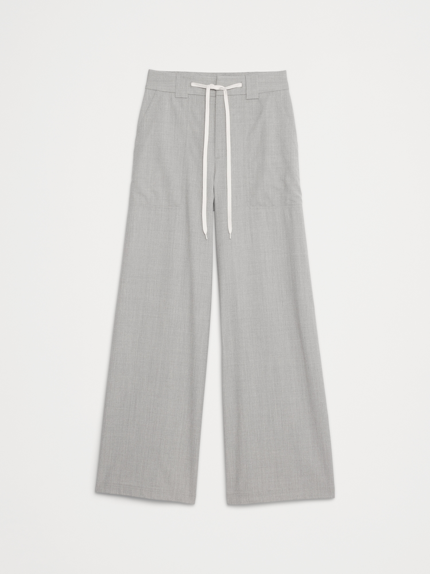 A very cool pair of pants. We kept the fit high-and-wide, with a drawstring at the waistband and patch pockets at back for a utility feel. To make them luxe, we reached for our best-selling Italian wool.