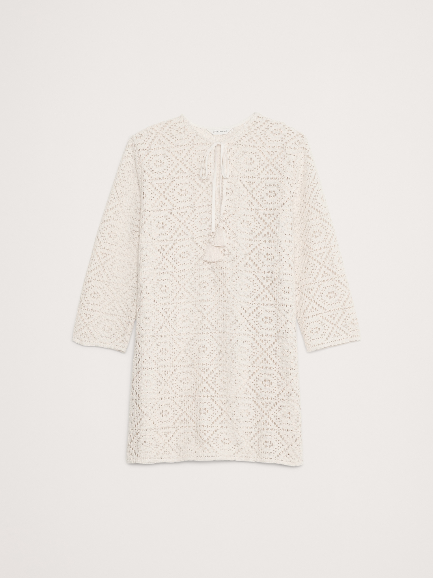 Designed for long weekends, we cut this kaftan-style beach dress in a soft cotton-blend lace we love for its crochet-like appearance.
