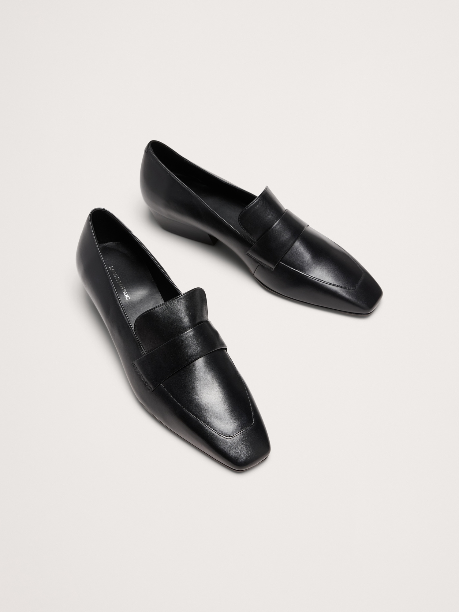 These sleek loafers are crafted from soft and sturdy Italian leather with a not-too-high heel for everyday wear. Here, we finished the style with a squared-pointed toe shape.