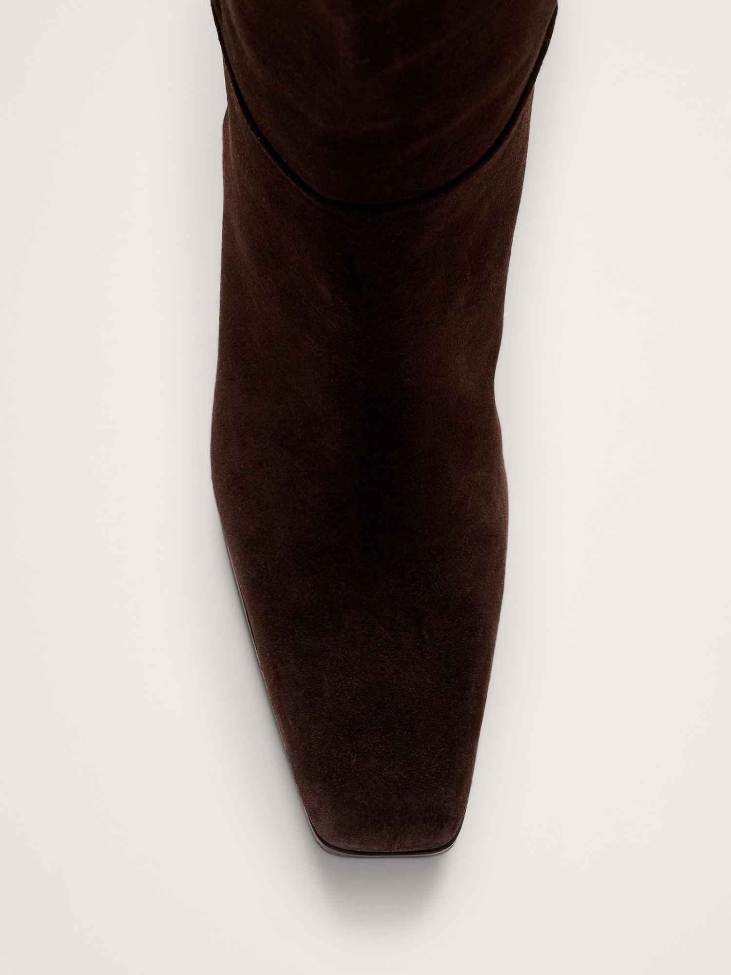 Our take on the season’s Western boot silhouettes, we opted here for a squared-toe and minimalist styling—the better to show off your choice of beautiful Italian leather or suede.
