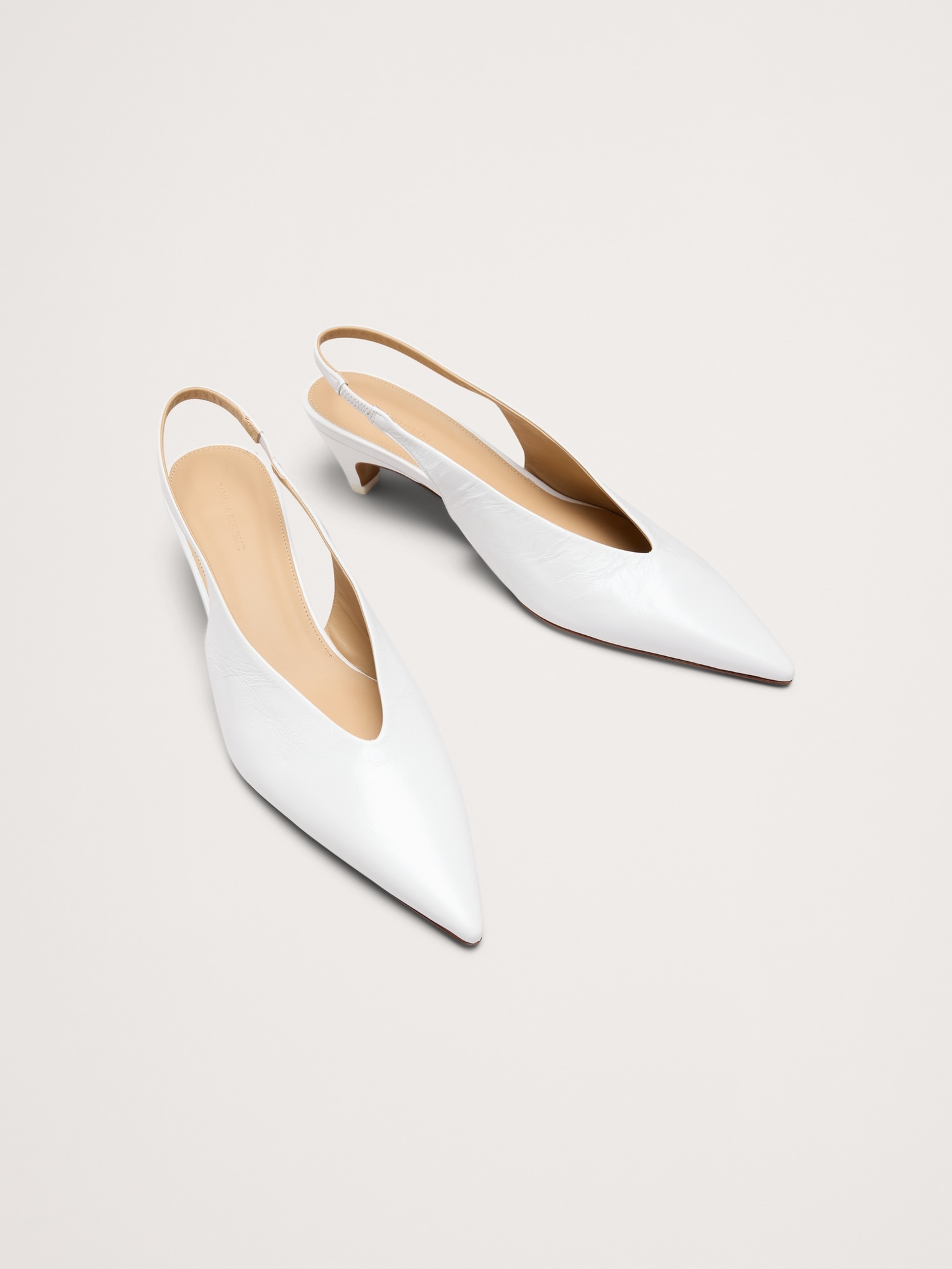 Set atop a modest kitten heel, these sleek pointed-toe slingback heels are crafted from Italian leather.