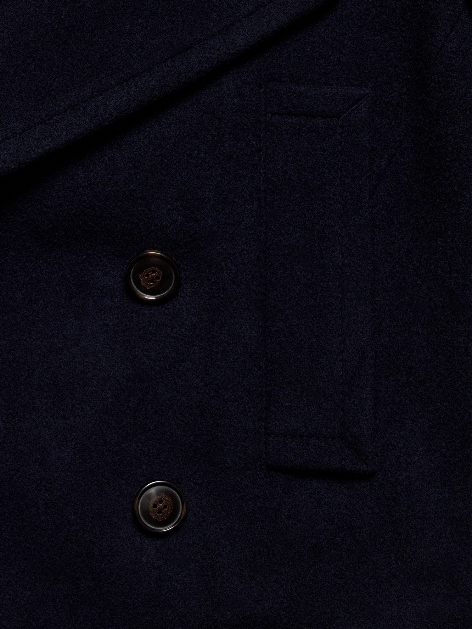 A very cool peacoat. We cut this one from our Italian melton wool-blend, so it’ll last for years to come. Plus, we kept the fit easy and a little short, as an invitation to play with proportions.