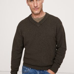 So soft, so warm, this classic v-neck sweater has exposed seams for a rugged look, knitted in our softest Merino wool blend from Italy.