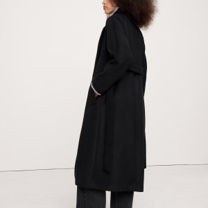 Our version of the season’s wrap coat, cut in an oversized silhouette from a warm Italian fabric woven from virgin wool and cashmere.