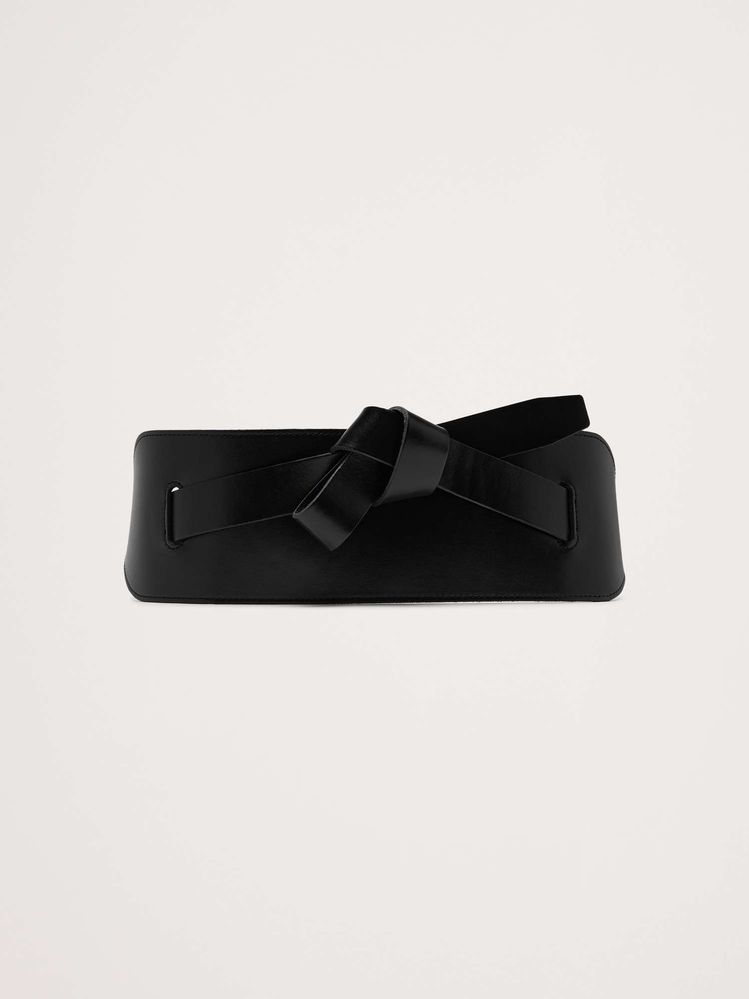 Designed to accentuate the waist, this leather corset belt has a buckle closure at back for ease and comfort.