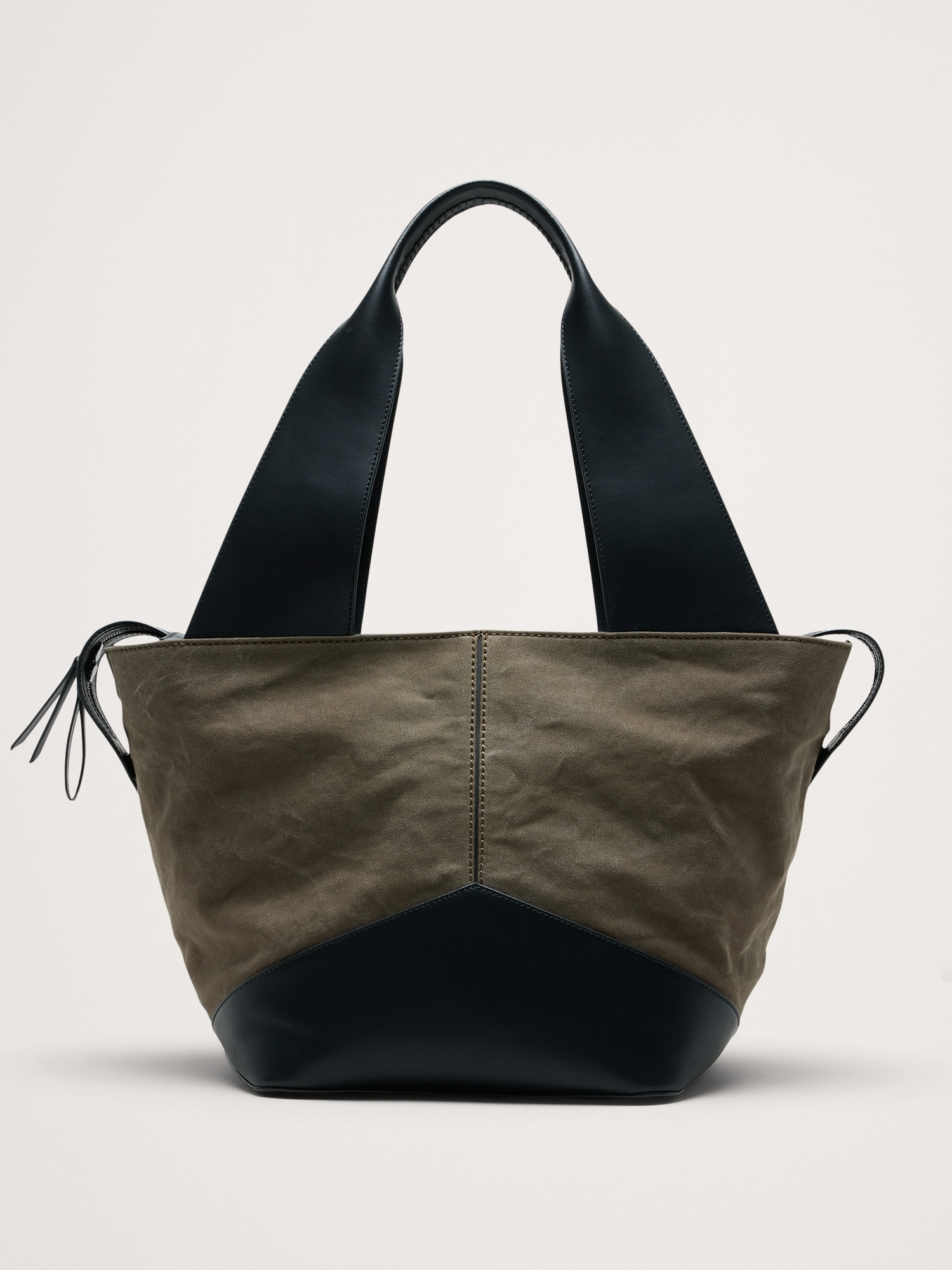 Beautiful materials need no ornamentation. Here, a patchwork tote that shows off your choice of beautiful leathers and suedes from Italy, or sturdy canvas. Plus, it comes with a detachable pouch with card holder to keep smaller items (keys, phones…) together.