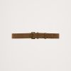 A sturdy and rugged leather belt, with a leather-covered roller buckle accent.