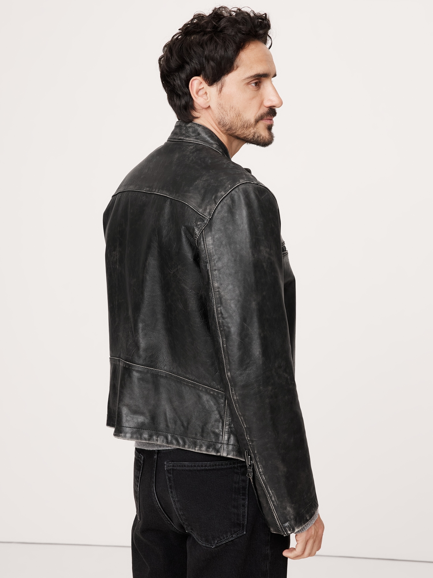Crafted from supple leather with a silky soft interior lining, this classic moto jacket is finished with all of the traditional features you’d want in a moto jacket, like a banded collar over the neck and grommets under the arms to prevent overheating.