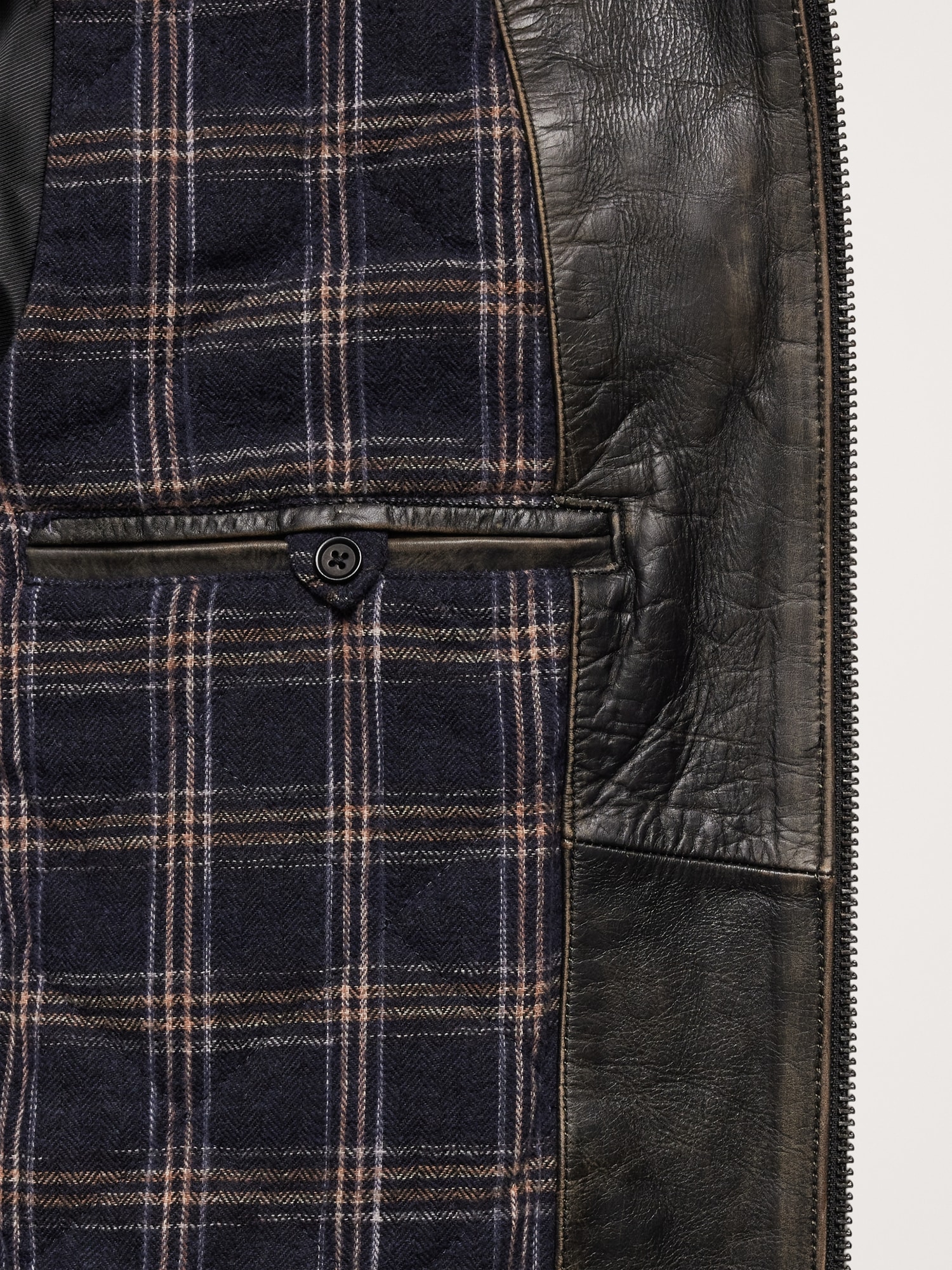 Crafted from supple leather with a silky soft interior lining, this classic moto jacket is finished with all of the traditional features you’d want in a moto jacket, like a banded collar over the neck and grommets under the arms to prevent overheating.