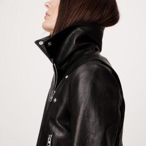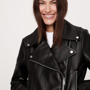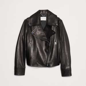 A relaxed and slightly cropped take on the moto jacket, our designers selected a specially-tanned lambskin leather here. We love the way softens with every wear, developing a unique patina with every wear.