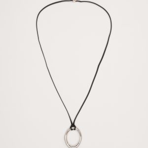 Leather Oval Pendant Necklace