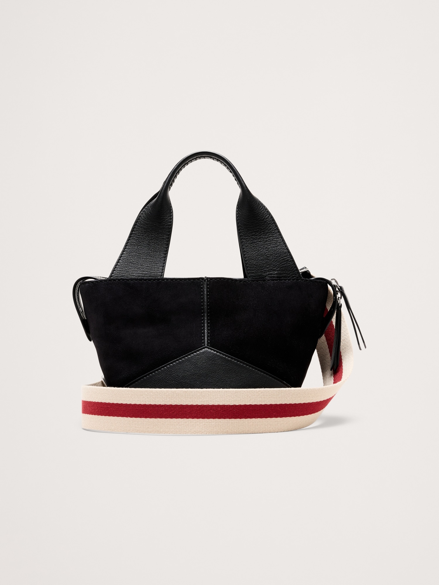 Beautiful materials need no ornamentation. Here, a patchwork tote in a smaller scale that shows off beautiful leathers and suedes from Italy.