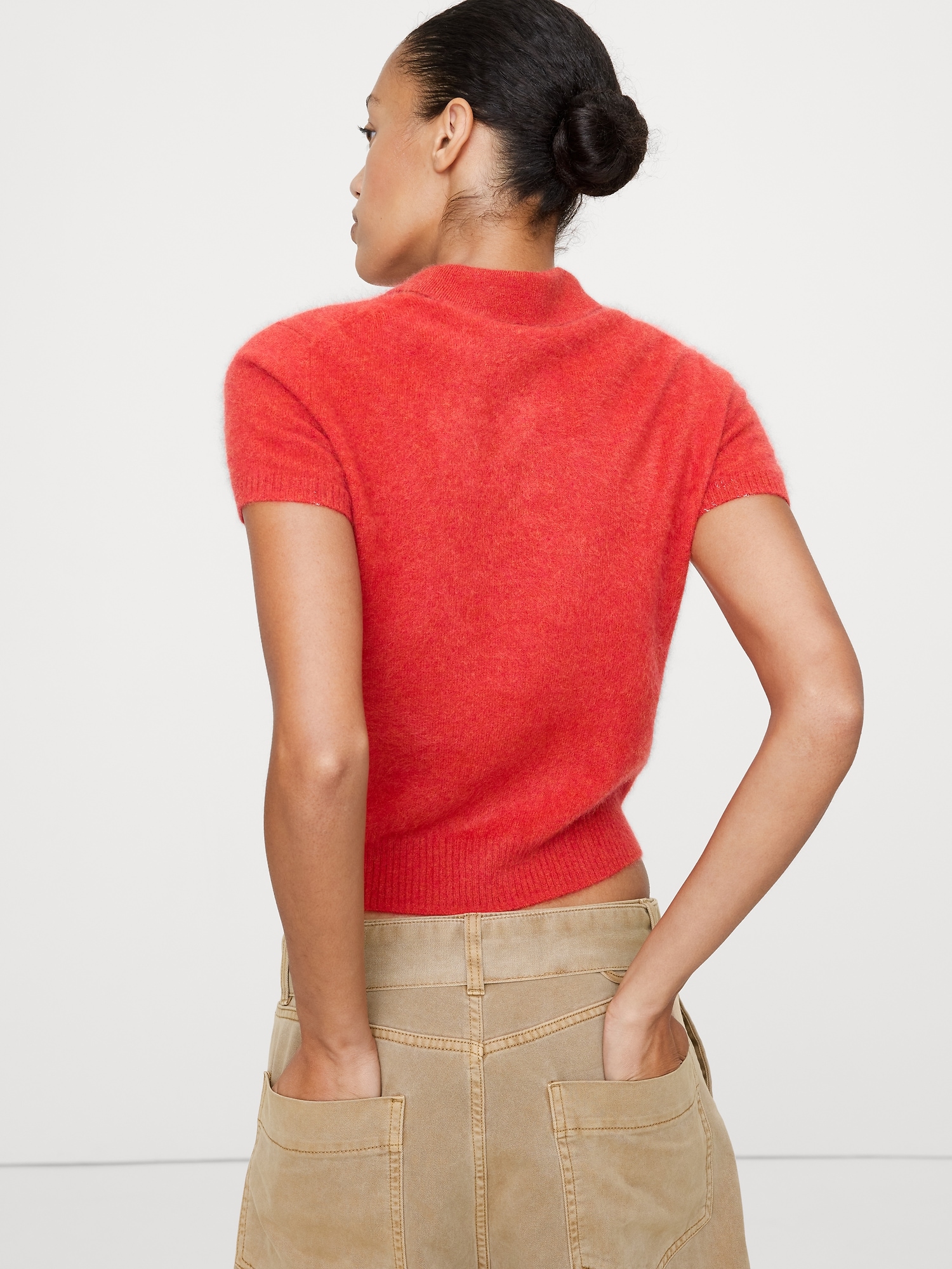 So soft, so fluffy. We managed to achieve the brushed finish of our best-selling brushed cashmere in a lighter weight for all-season wear, here in a short sleeve sweater polo.