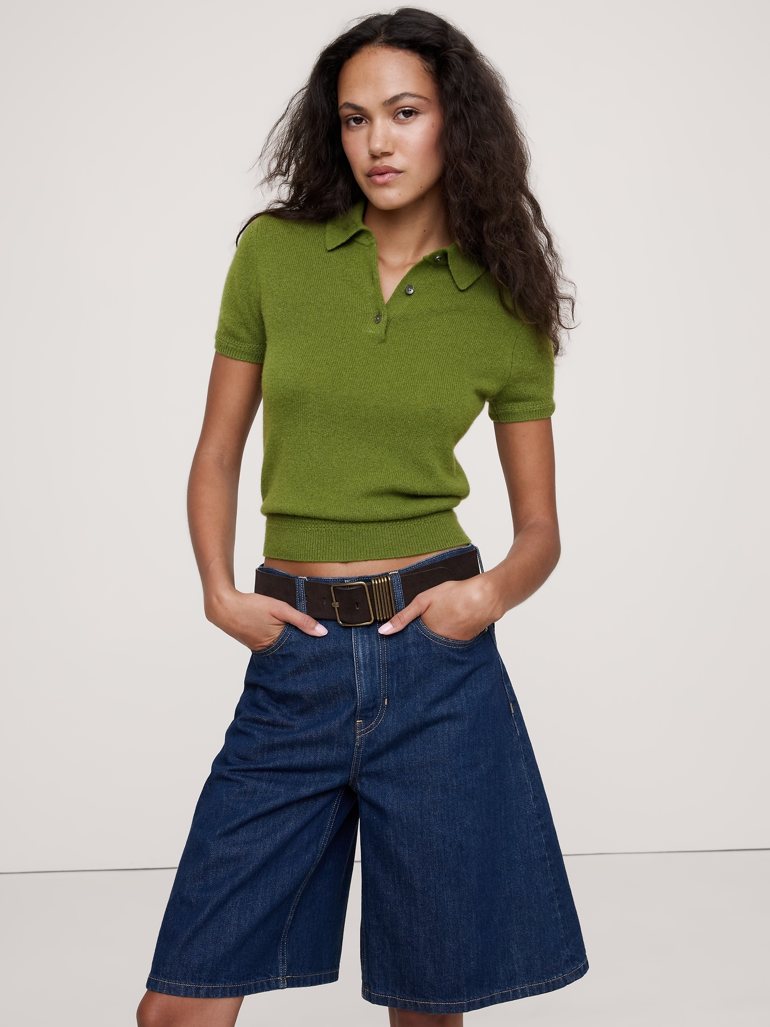 The vibe is lightweight luxury. This classic sweater polo has not-too-tight fit through the body, in our lightweight cashmere yarn.