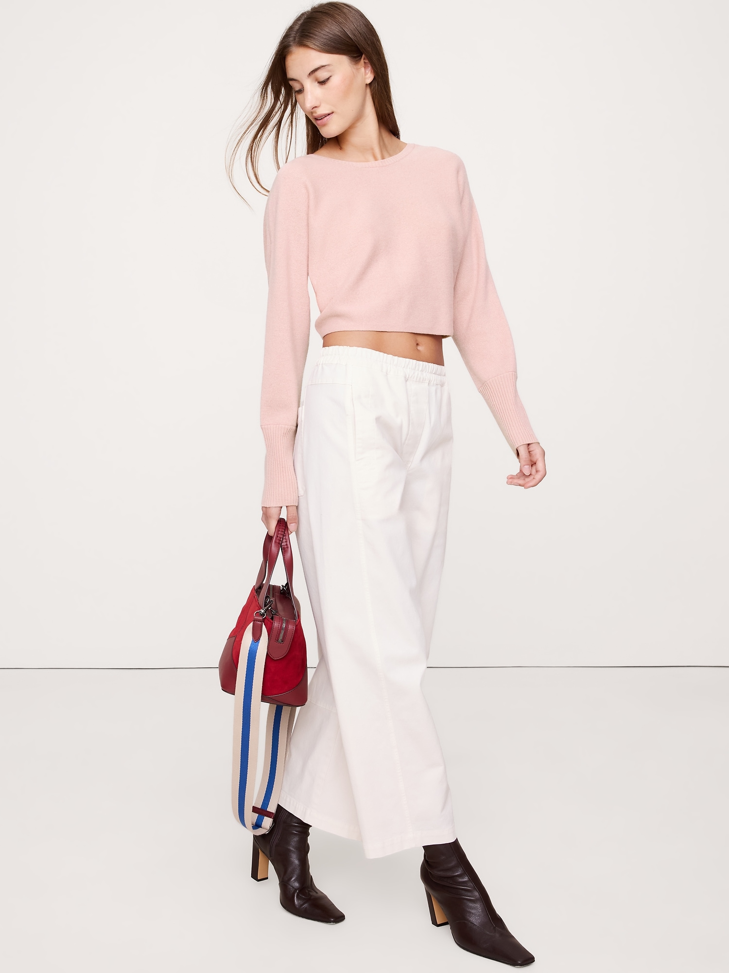 The vibe is lightweight luxury. This backless cashmere sweater has an oversized fit, knitted in our lightweight cashmere yarn—selected for its softness and all-season weight.