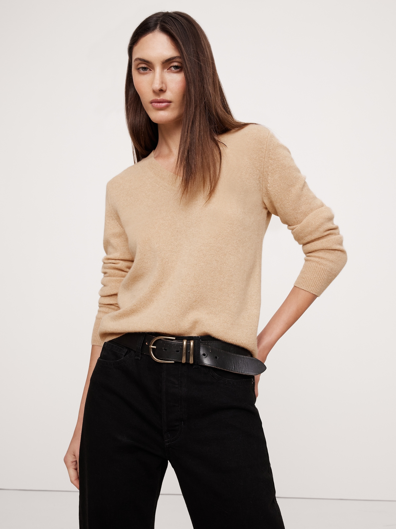 The vibe is lightweight luxury. This updated take on the classic V-neck sweater has not-too-loose fit through the body. We knitted it from our lightweight cashmere yarn, selected for its luxurious softness and all-season weight.