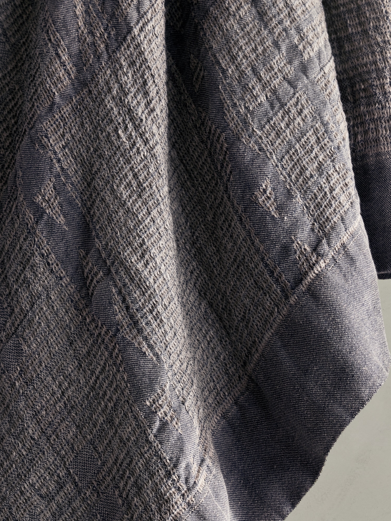 Woven by African Jacquard in Cape Town, South Africa in 100% linen using traditional French jacquard looms . African Jacquard’s uniquely dimensional weaving style and subtle use of traditional geometric designs produces an extraordinary textile piece to treasure, in the form of a stunning dimensional throw with subtle pattern and extraordinary drape. Handmade in South Africa. #619384