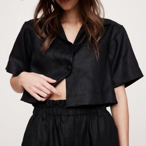 We love an easy linen short. We designed these with a high rise and paperbag waist so they work with on-trend cropped tops. Make it a set with a matching linen one.