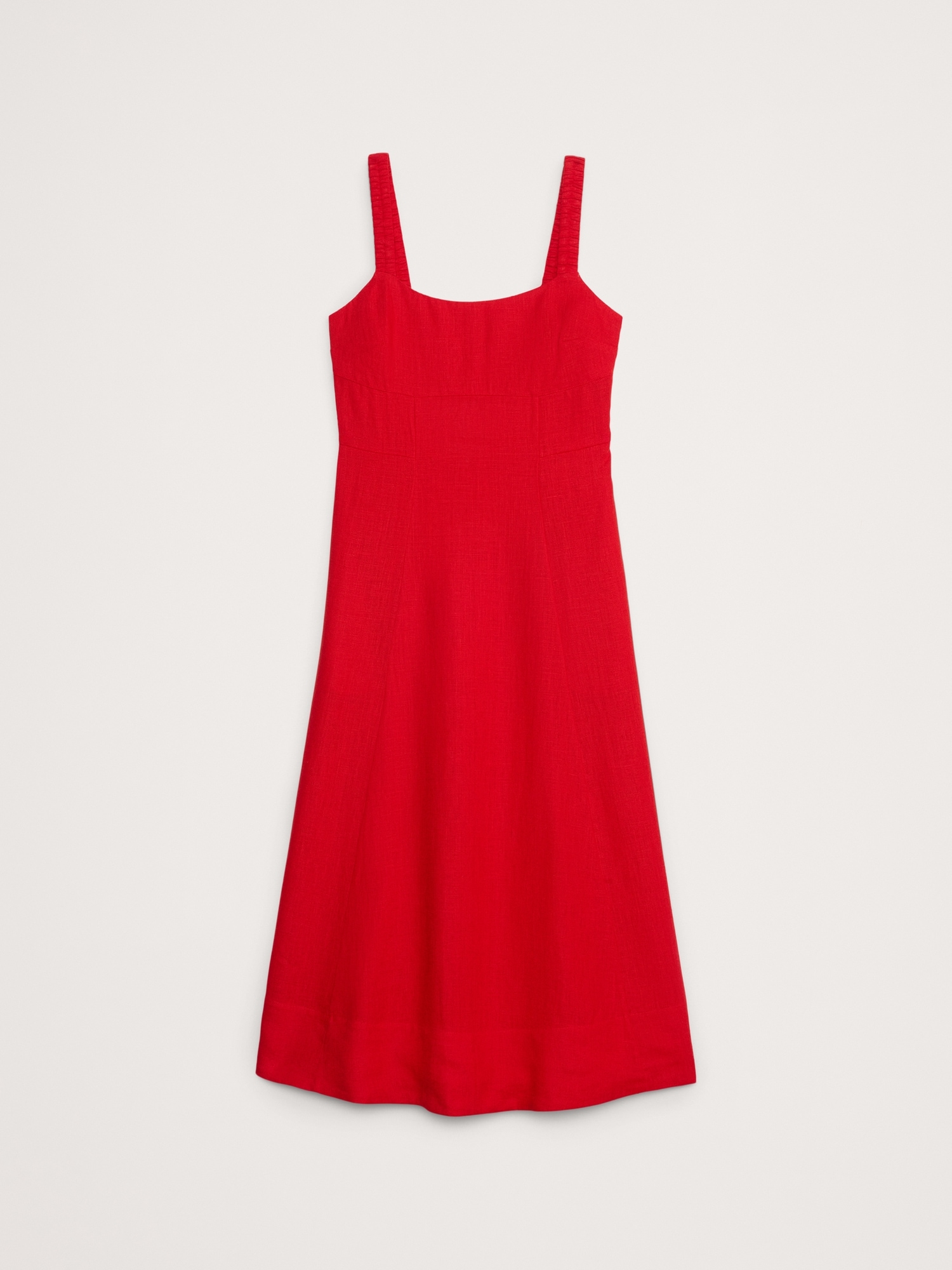 Details we love about this dress: the square neckline, the cut-out detail at back, and the 100% certified-European linen fabric.