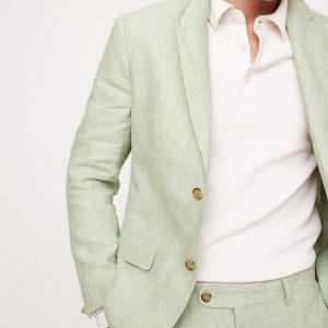 Designed with warm climates in mind, this sleek suit jacket is cut from premium linen—seen here in a soft délavé blue. Plus, we left the back unlined so it stays cool.