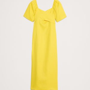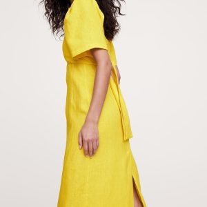 Honestly, one of our favorite linen dresses this season. We cut it with dressier occasions in mind, opting for a sweetheart neckline and almost-flutter sleeves, in 100% certified-European linen.