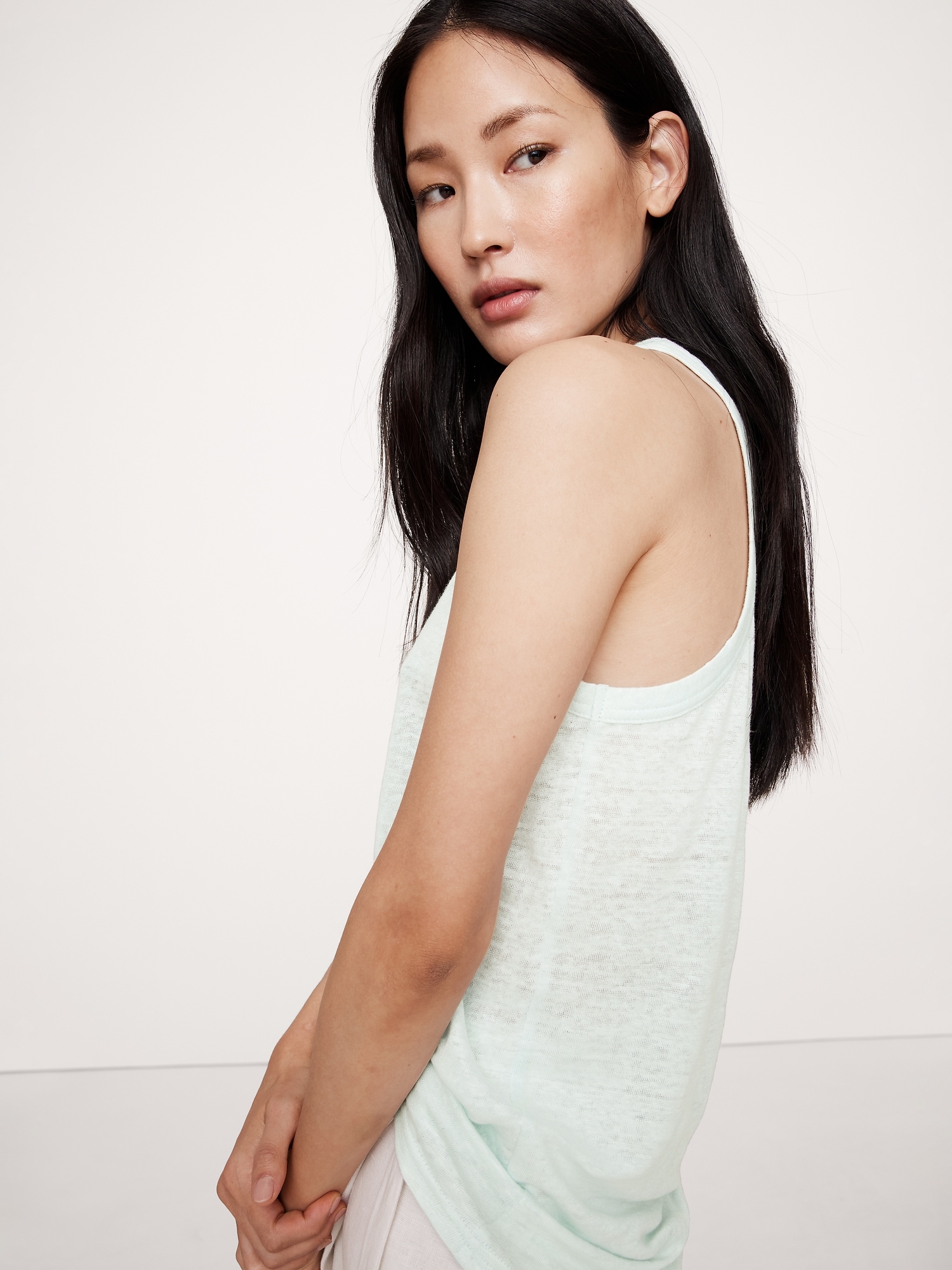 Relax, it’s linen. This tank top has a slim fit (size up if you prefer more relaxed) and is cut from our best-selling linen jersey—an ideal choice in hot, humid weather.