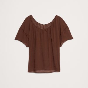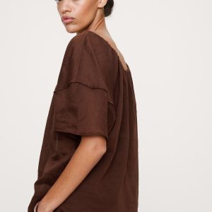 Linen-Viscose Puff-Sleeve Top