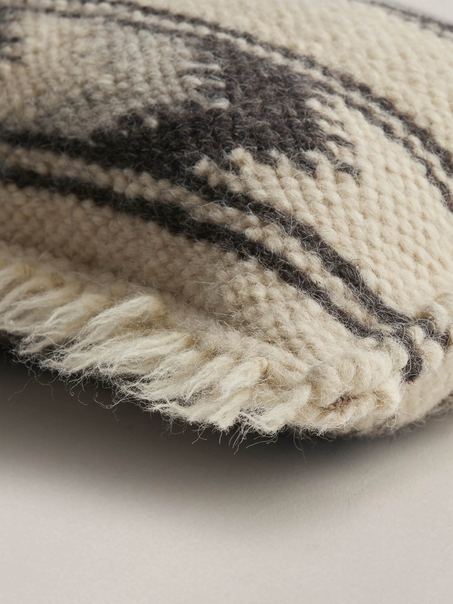 A celebration of natural wool grounded in a centuries-old approach. This pillow was made in Ukraine by craftswomen restoring the tradition of Lyzhnyk weaving. Natural undyed wool fibers are washed in the river to preserve their natural state. These fibers are then spun and woven by hand, before they’re brushed on one side to produce a unique textured effect. Invisible zip closure. Made in Ukraine. Pillow inserts are sold separately and are sized slightly larger than our pillow covers to create a fuller effect. #826892