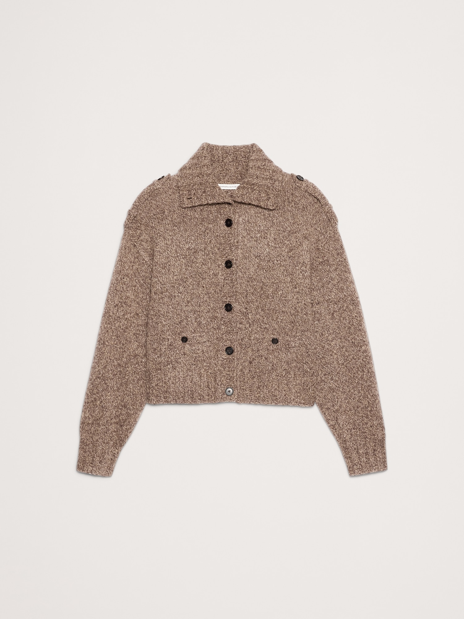 Marled Cashmere-Merino Blend Epaulet Cardigan