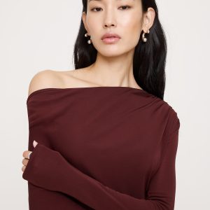 Cut from a stretchy matte jersey, this maxi dress feels as effortless as a T-shirt but looks more dressed-up thanks to an off-shoulder neckline and cut-out detail at back.