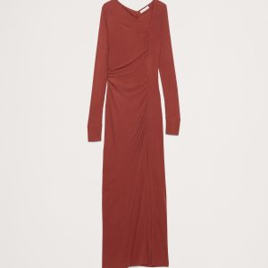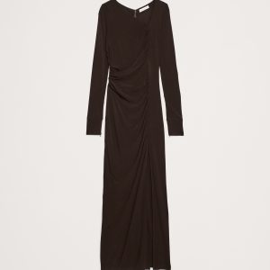 Quite the gathering. This figure-hugging maxi dress is cut from our best-selling matte jersey knit (so it’s t-shirt soft and looks fab), here with ruching at the sides and a slash neckline.