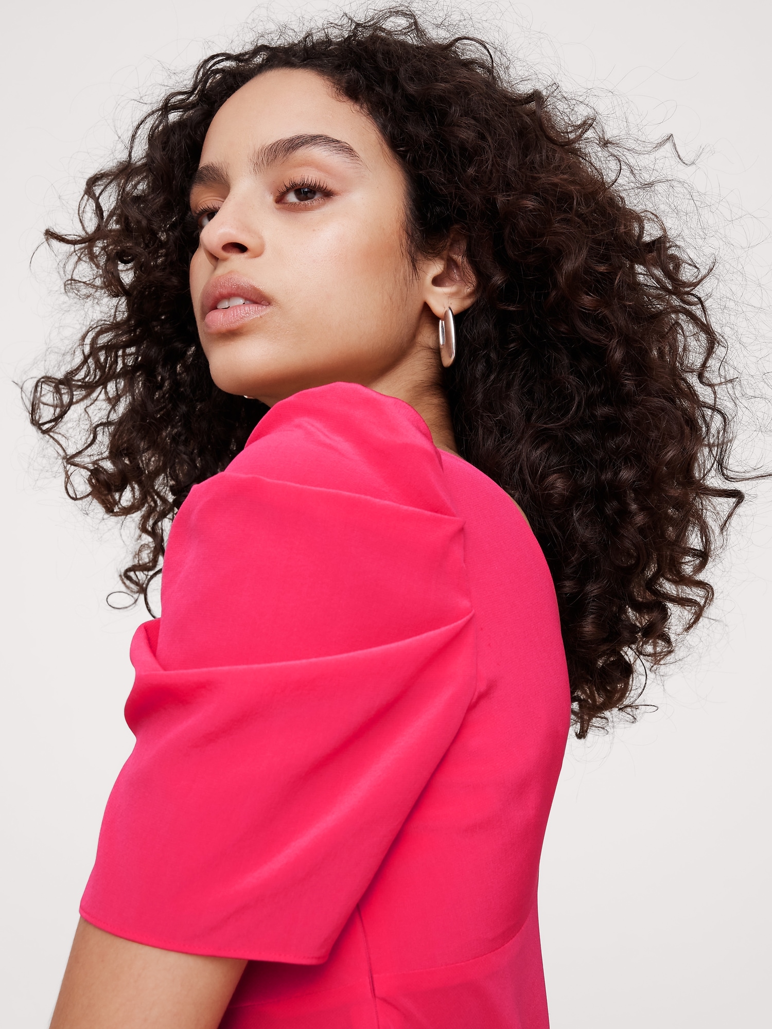 A good excuse to RSVP yes. This silk dress is based on a vintage slip dress style from the 1990s, updated with draped, puffed sleeves and our signature silk de chinea fabric we love for its luxurious feel and matte look. Plus, did we mention it’s also machine washable?