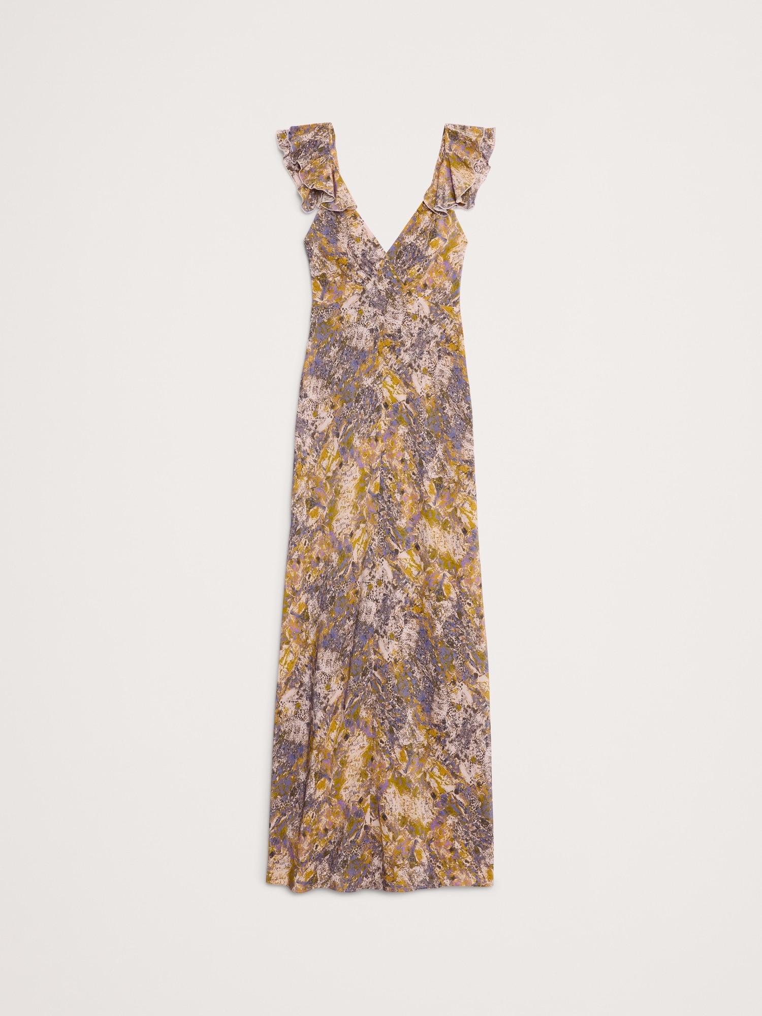 A good excuse to RSVP yes. Cut from our signature silk de chinethis ruffled maxi slip dress looks (and feels) amazing on. Plus, did we mention it’s machine washable? Fit Flare: Fitted bust and empire waist with a flare skirt. V-neck and button-loop at back. Open back detail. Invisible zip at back waist. Unlined. #771968