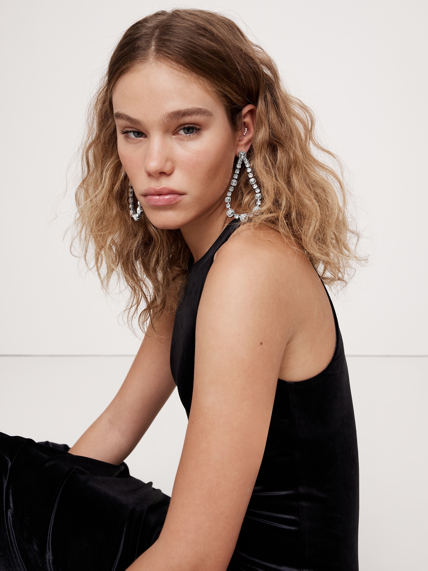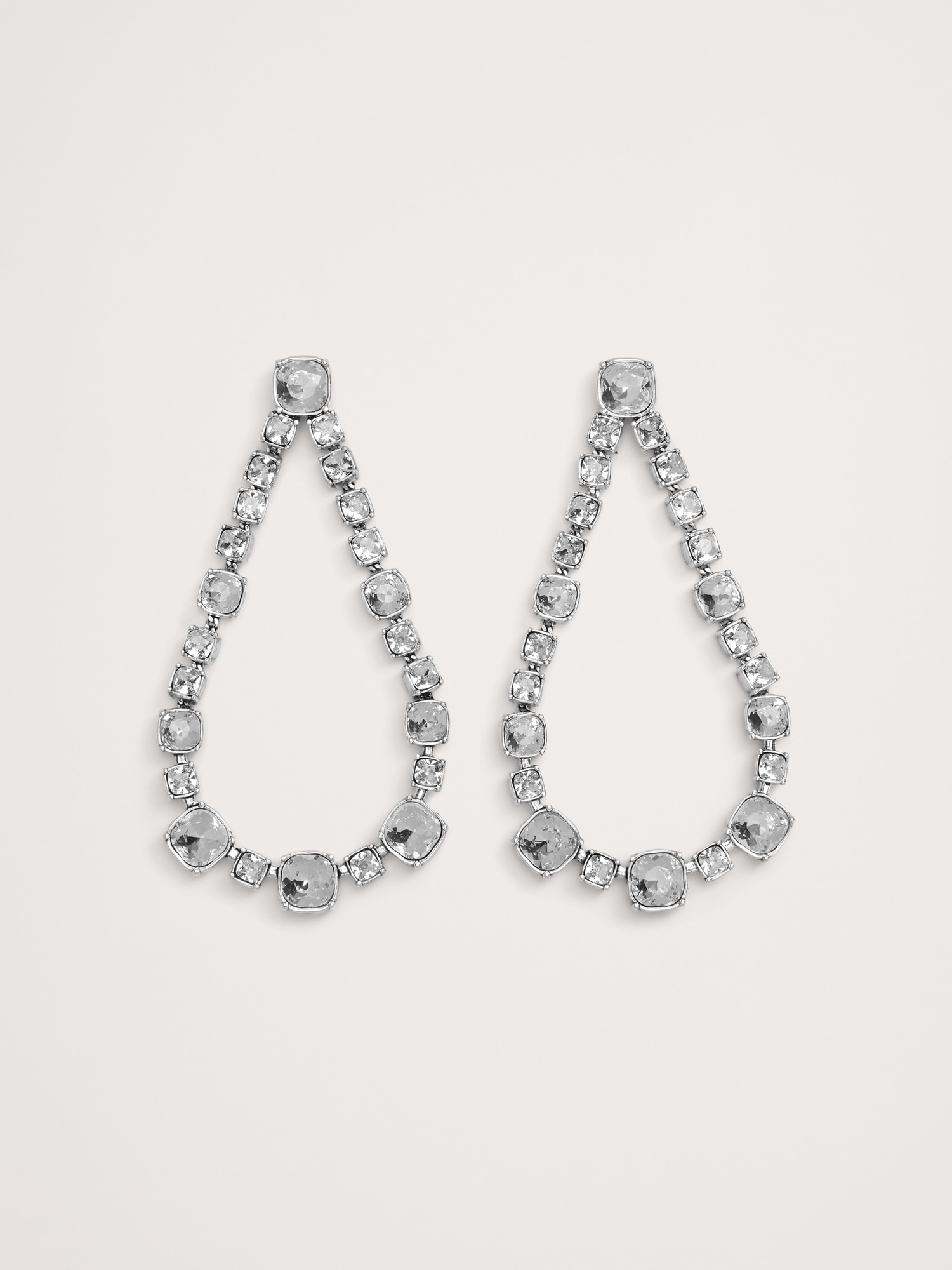 These head-turning silver-plated rhinestone statement earrings with an elegant long teardrop silhouette are surprisingly lightweight.