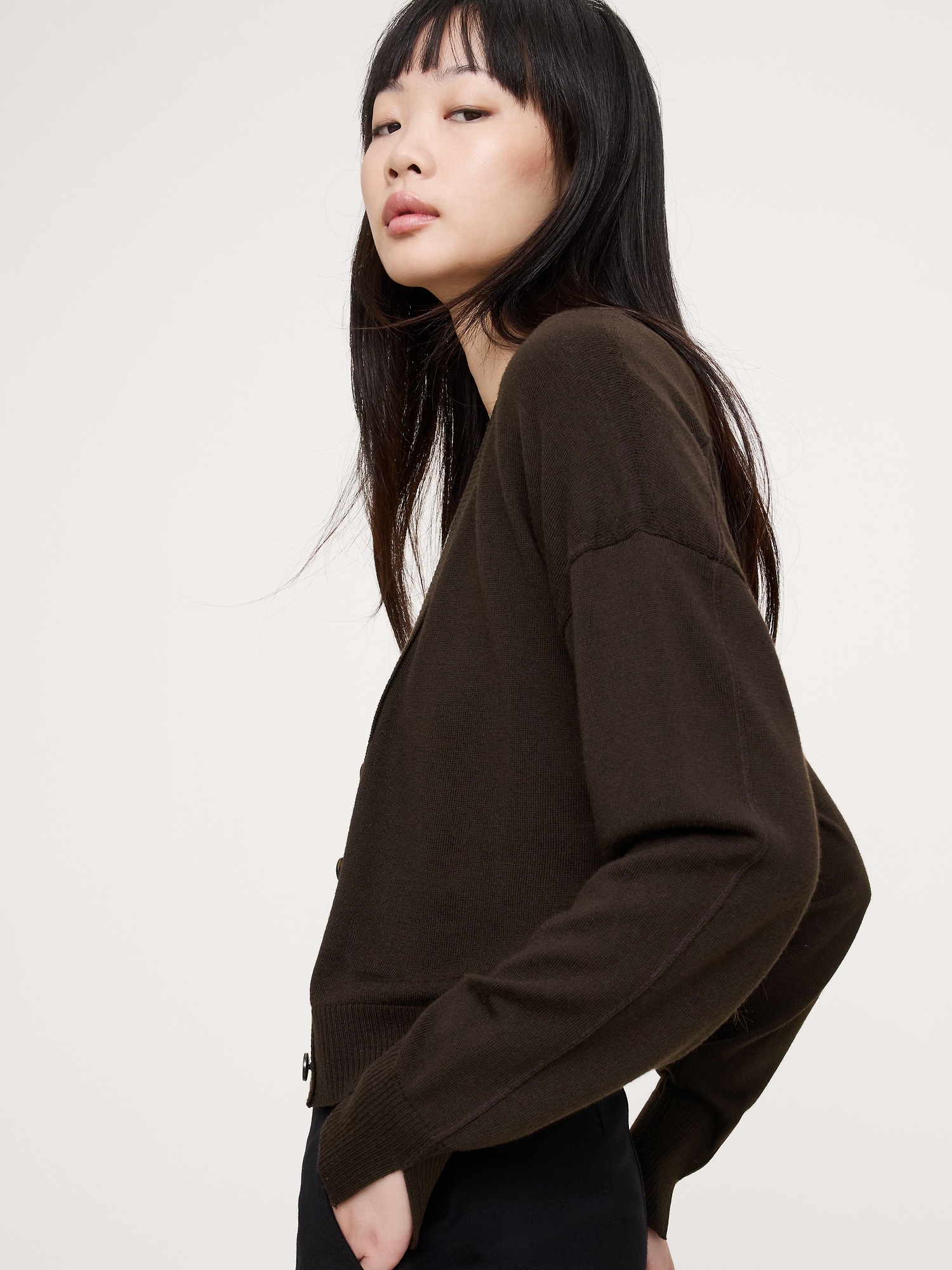 Looks good, feels good. Our cardigan sweater is crafted from beautifully warm and soft Merino wool, produced according to the NATIVA™ Regenerative Wool protocol.