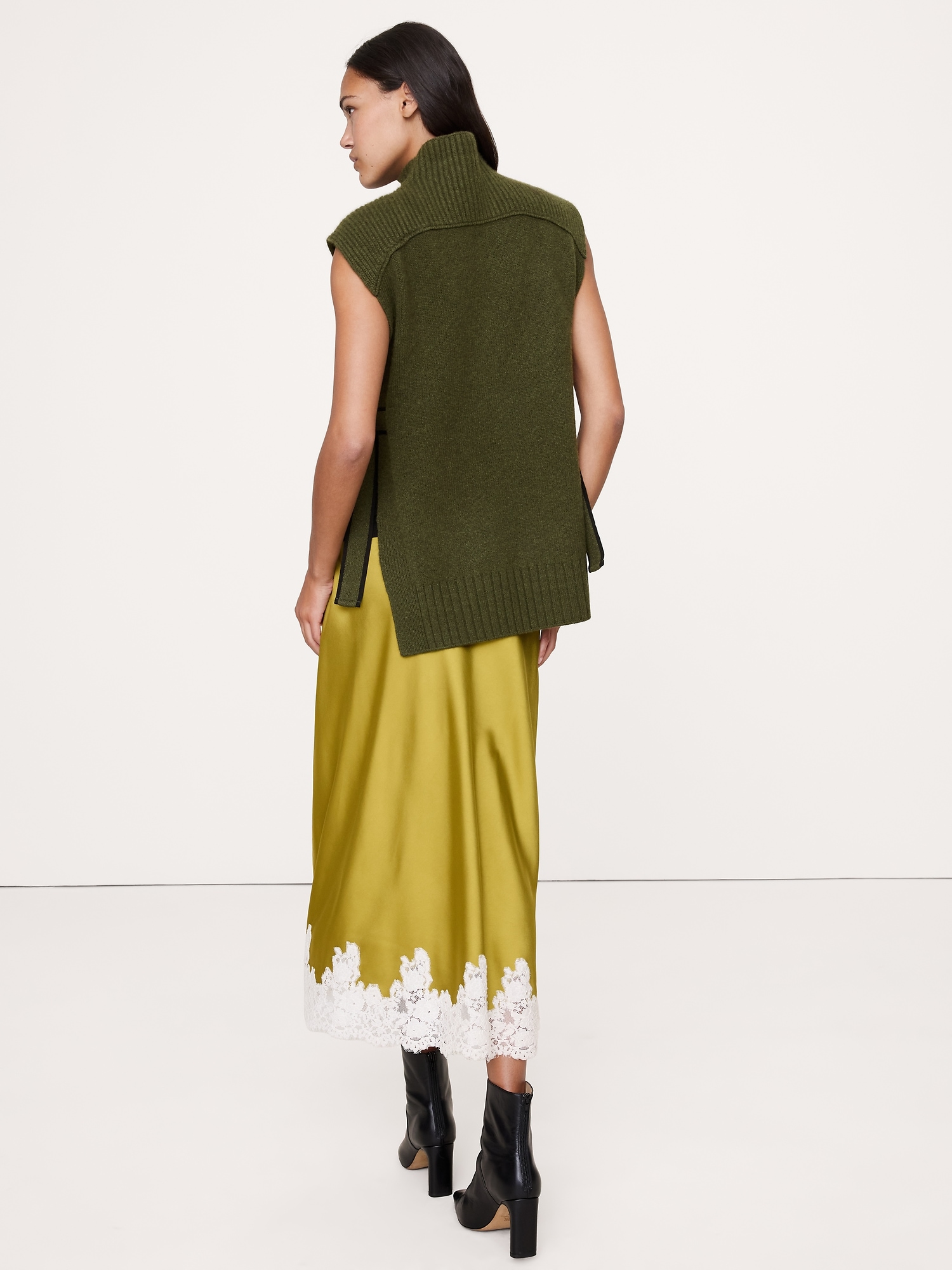 A layer to carry you through cooler seasons to come, we designed this cute sweater vest with open sides as an invitation to play with proportions Crafted in a warm and luxuriously soft blend of Merino wool and cashmere.