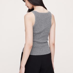 A cute ribbed tank with henley details, knitted in a soft blended yarn of all-weather Merino wool and cotton.