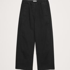Relaxed fit: Mid-rise (9.5\”). Relaxed through hip and thigh with a wide, barrel-leg. Ankle length.