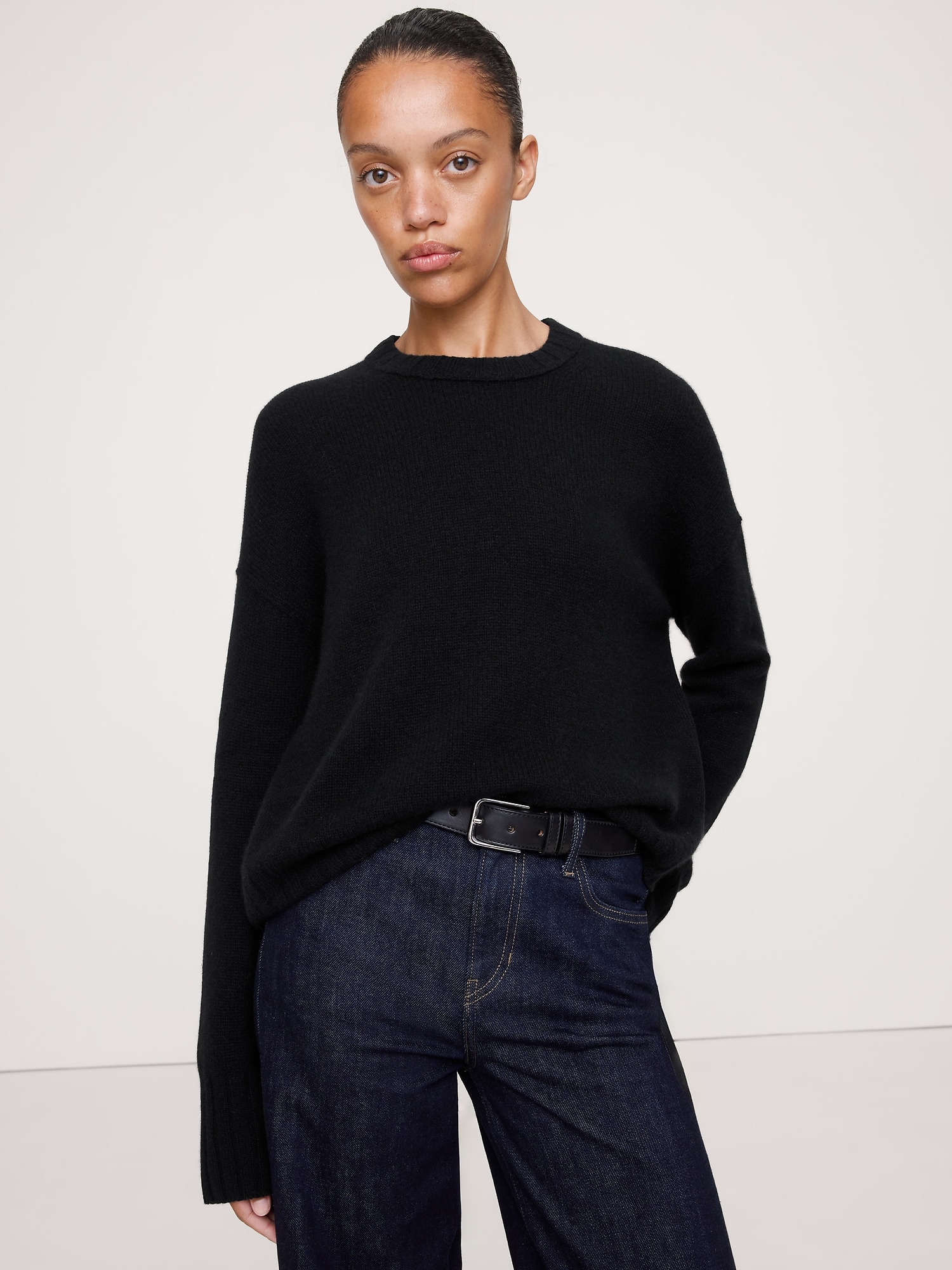Supremely soft and warm, we chose our midweight cashmere yarn for this sweater so it will carry you through cooler months. Here, we opted for a longer length that hits just below the hips.