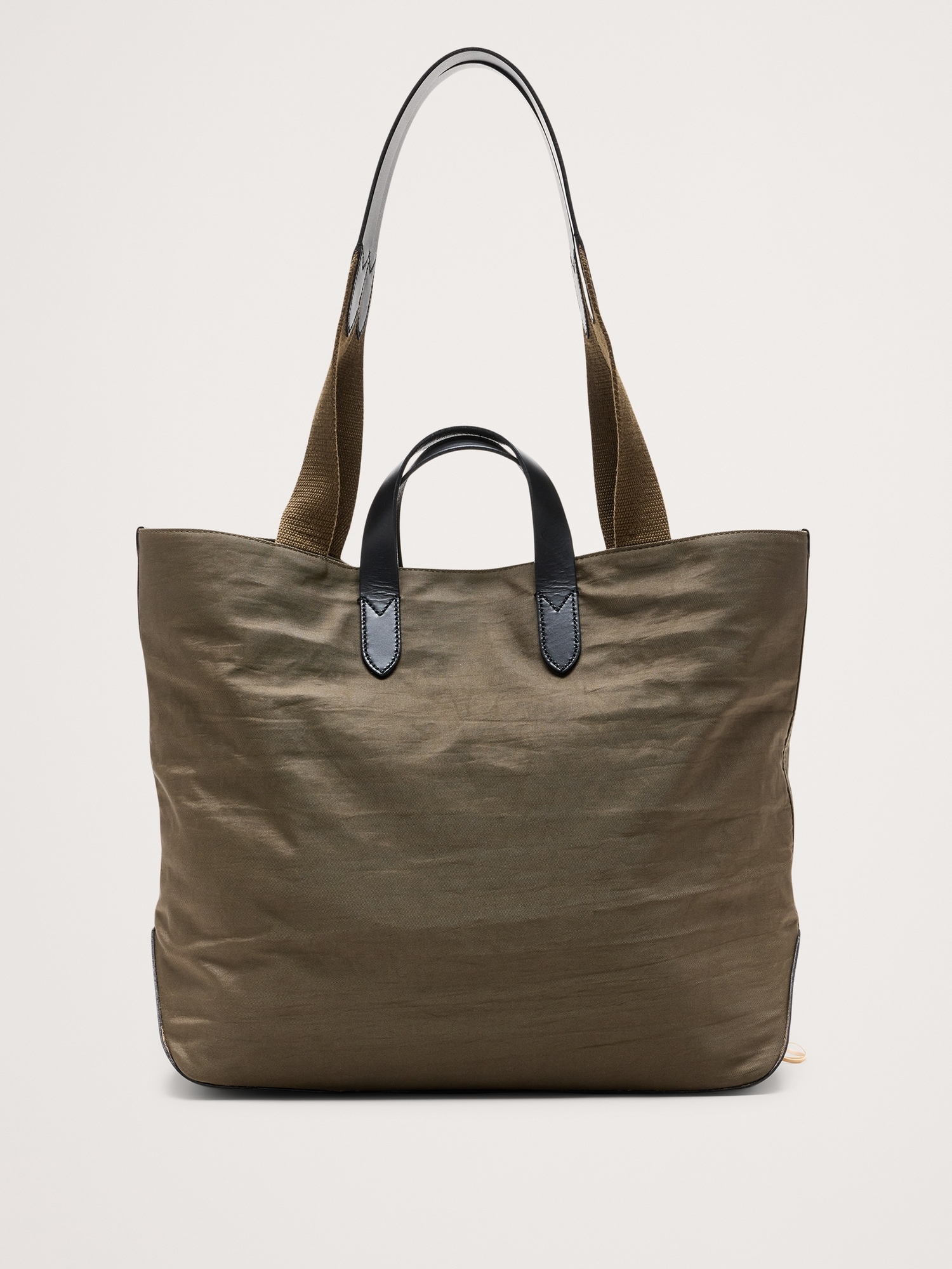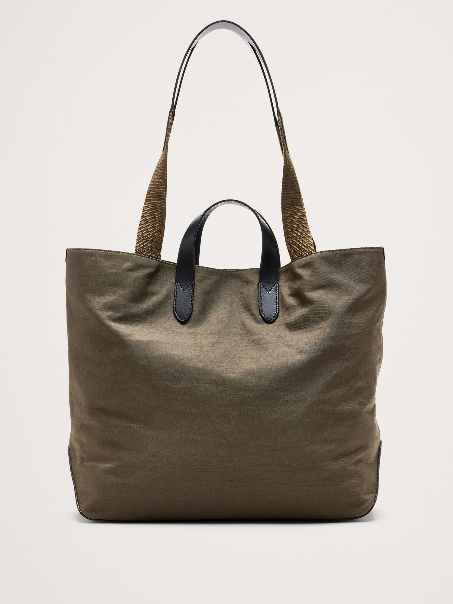 Rugged and minimalist, this canvas and buffalo leather tote bag is designed with space to spare thanks to a large, uninterrupted interior with a snap closure. We added one zip pocket inside to keep track of small items like phones and keys, as well as two sets of straps so you can carry by hand or on the shoulder.