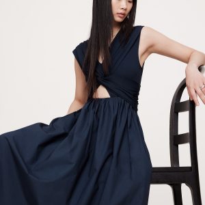 Soft, stretchy jersey twists to create a cutout effect at the waist of this mixed, media dress, finished with a 100% cotton poplin skirt. Did we mention it also has pockets?